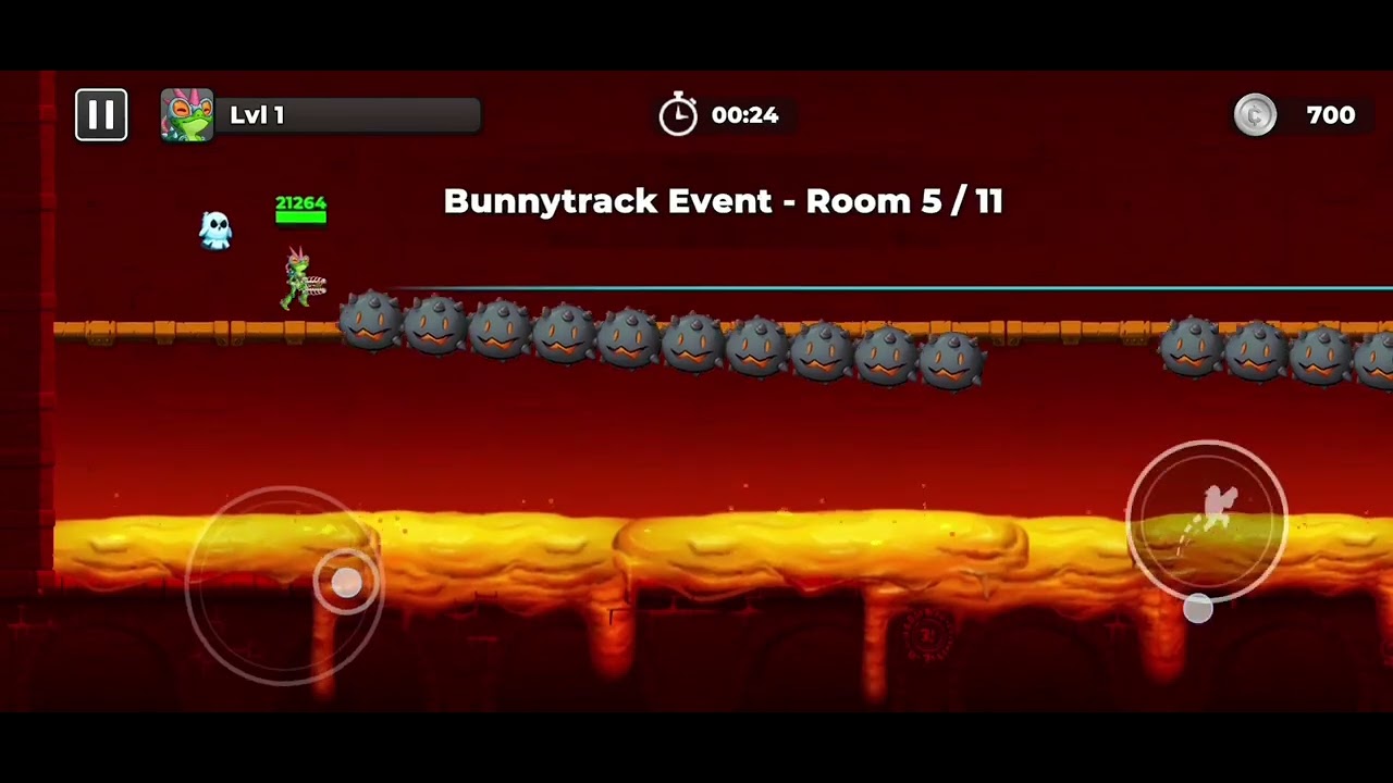 There are multiple hazards throughout your run such as; orange lava which deals heavy damage, red lava which deals a 1-hit KO upon contact, and many scenarios where you can be crushed.
